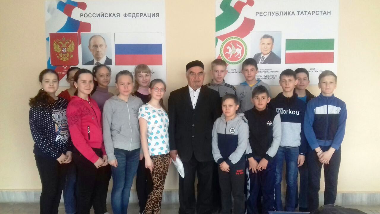 Опубликовано: 11.05.2018Учащиеся 5 б и 6 а классов встретились с Хадиевым А.Х., слова которого смогли затронуть сердца ребят. Ученики с уважением и с гордостью слушали односельчанина.
