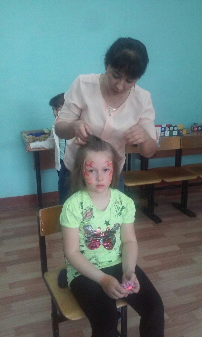 В пришкольном лагере «Ромашка» в рамках профориентационной деятельности был проведен мастер – класс парикмахером Сатаровой Л.Х. Она научила детей красиво и модно плести косы.