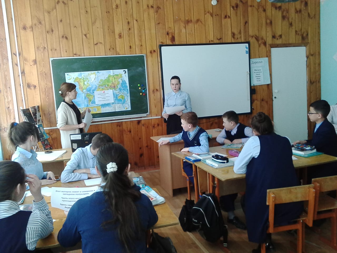 Атналык кысаларында 7 нче б сыйныфында географиядән “Евразиянең географик урыны. Материкны ачу тарихы” темасына ачык дәрес булды.