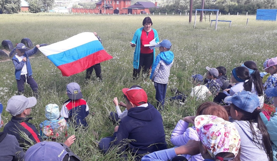 В пришкольном лагере «Ромашка» состоялась встреча с работниками СДК. Они организовали викторину «Государственные символы России», посвященную Дню России.