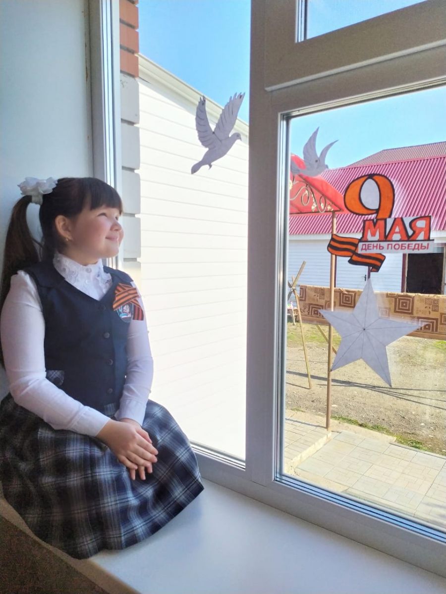4 майдан - 9 майга кадәр  мәктәп укучылары “Җиңү тәрәзәләре” Бөтенроссия  акциясенә кушылды.