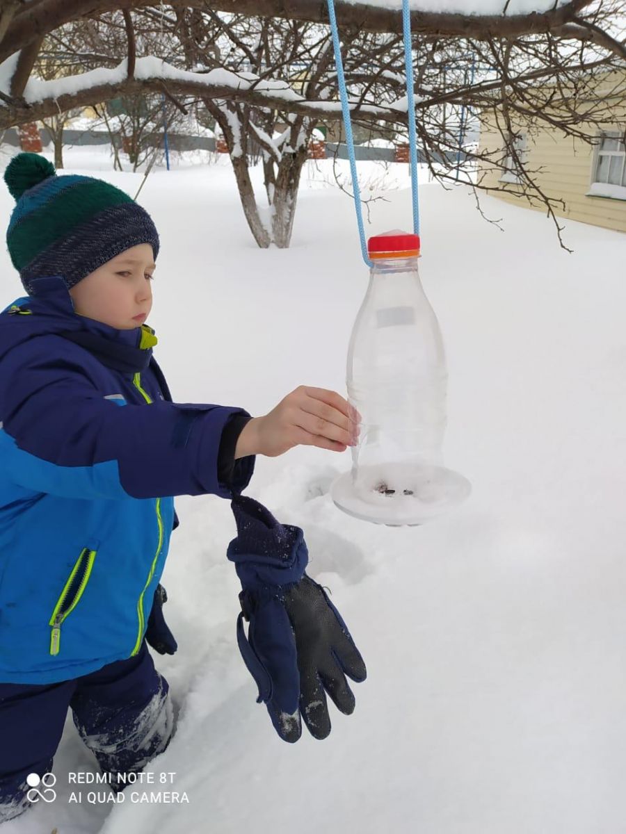В рамках акции “Птичье кафе”обучающиеся 1б класса регулярно кормят птиц.