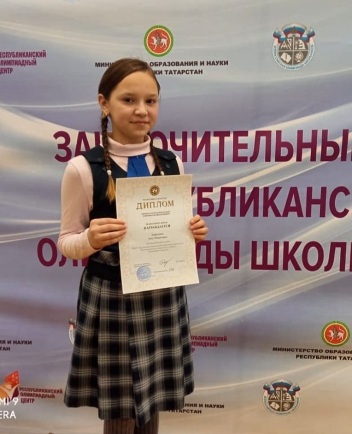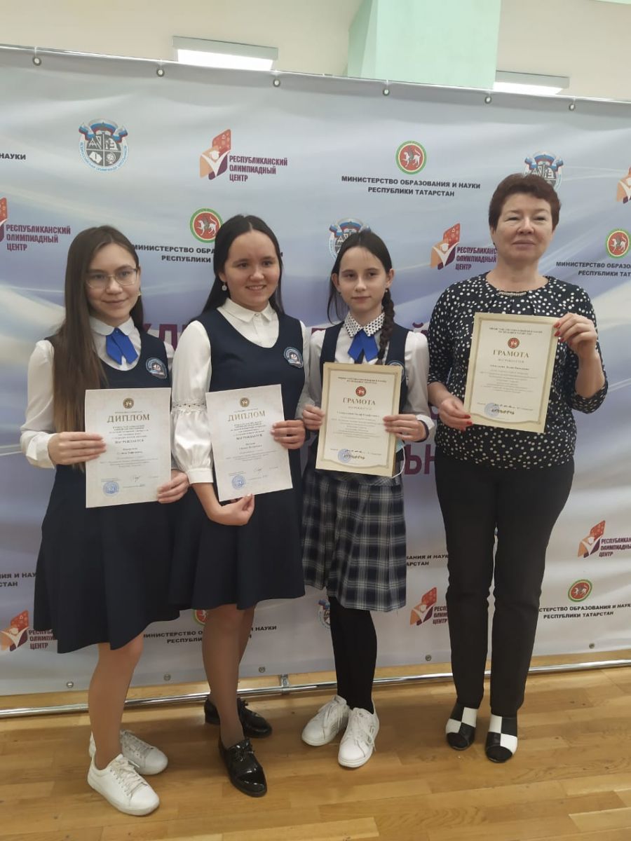 - по родной литературе для обучающихся - татар школ русским языком обучения обучающаяся 10 класса Камалова Гулина и обучающиеся 8б класса Шайхутдинова Алиса һәм Гатауллина Лина.