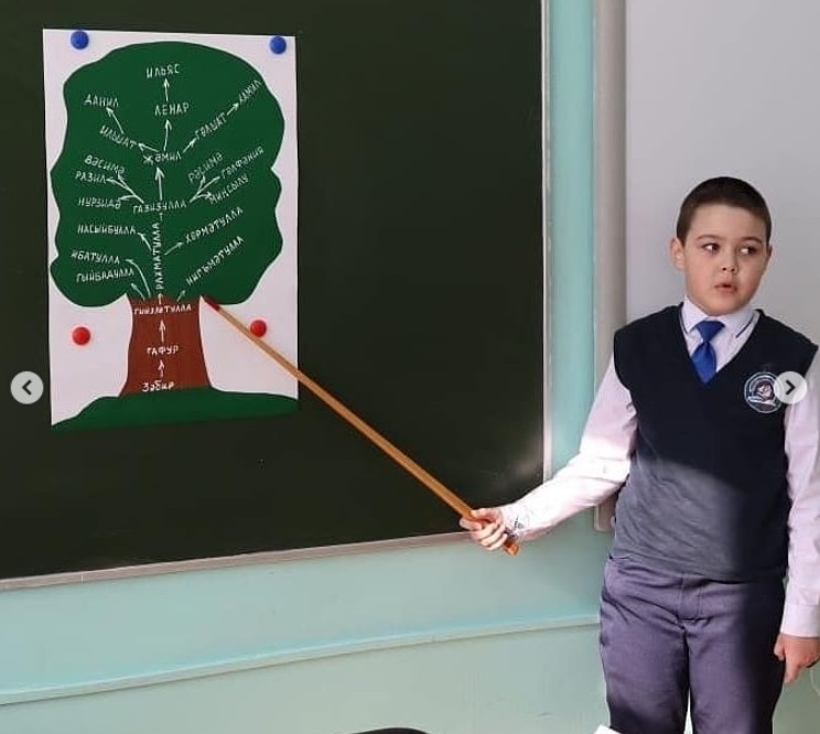 Год родных языков и народного единства. В школе прошел второй этап конкурса "Моя родословная" среди  обучающихся 1-4 классов. Гость конкурса Миннебаева Г.А.