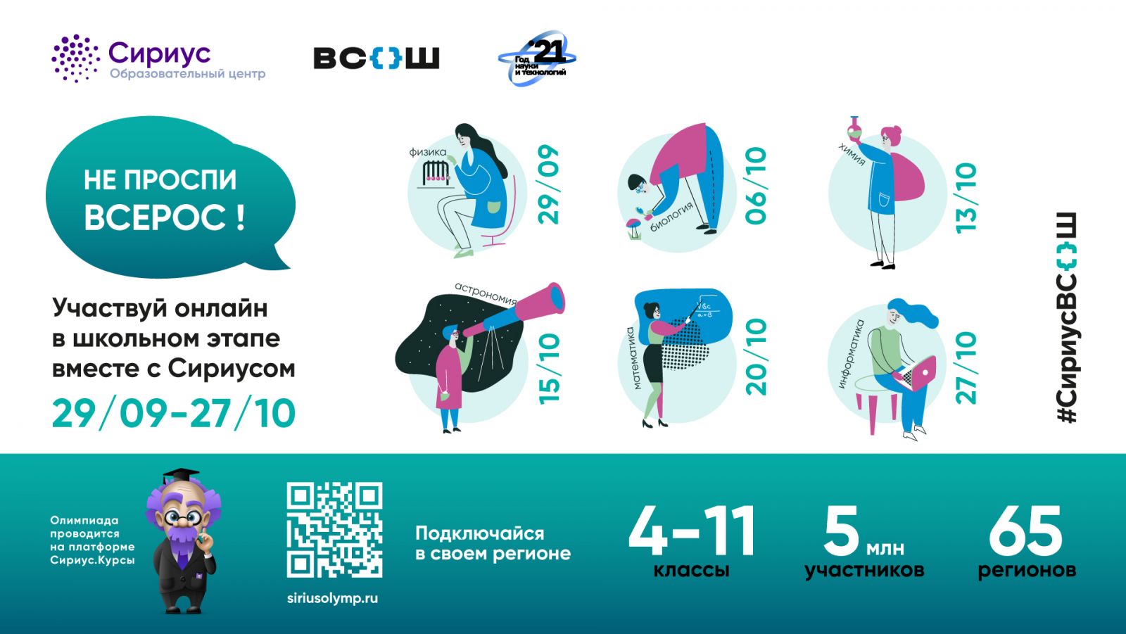 Опубликовано: 23.09.2021Школьный этап предметных олимпиад по физике, математике, химии, астрономии, биологии, информатике пройдет на образовательном портале "Сириус".