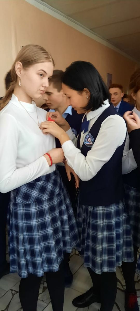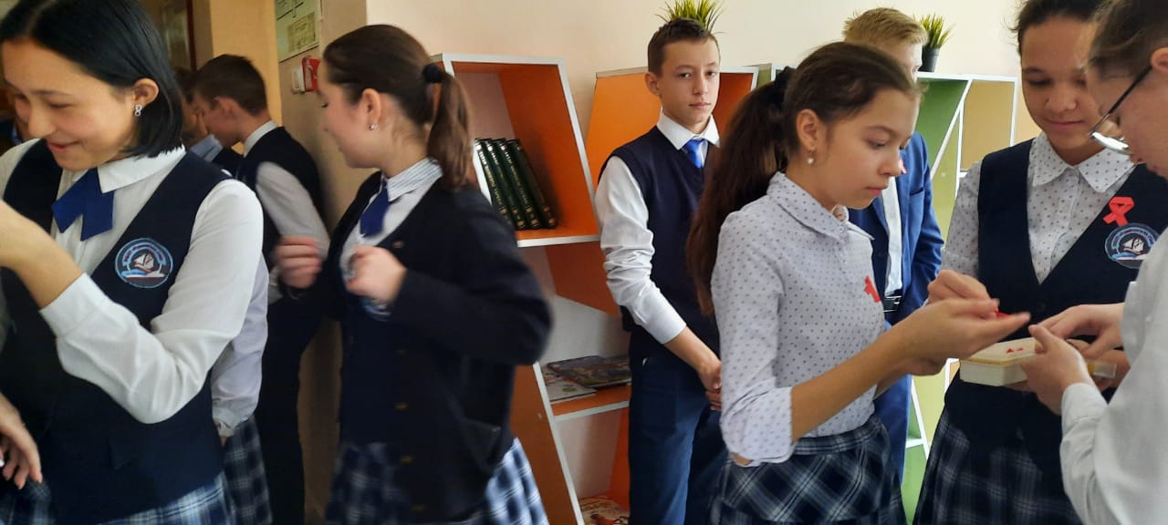 Опубликовано: 01.12.2021В этот день волонтёры раздавали ленточки и рассказывали, для чего мы крепим себе этот символ борьбы со СПИДом. Ленточка цвета крови, свёрнутая петелькой, является Международным символом борьбы со СПИДом – символом нашего сострадания, поддержки и надежды на будущее без СПИДа. Этот символ неравнодушия, завоевавший огромную популярность во всём мире. Цель акции – привлечь внимание школьников к проблеме СПИДа, проинформировать их о путях передачи ВИЧ, призвать к толерантному отношению к людям с ВИЧ.
