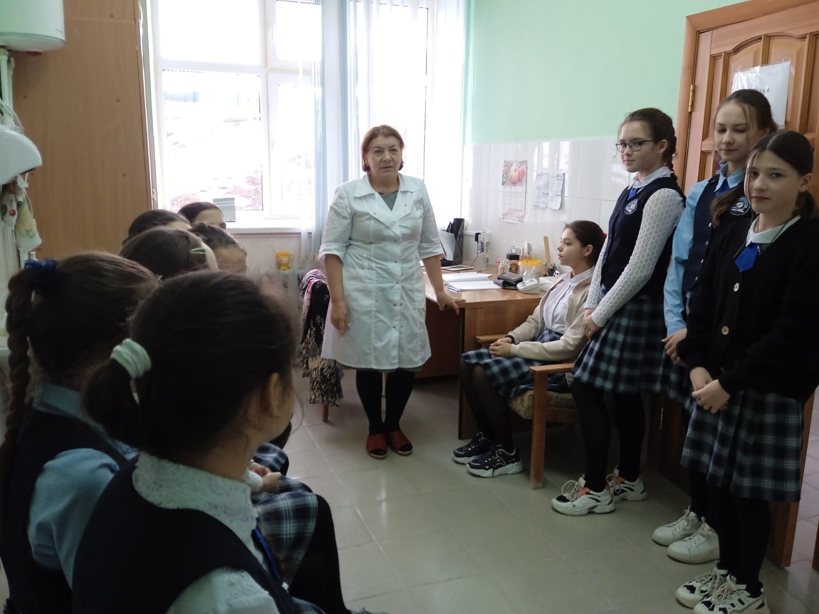 3. Мәктәп шәфкать туташы Раилә Камил кызы, 6 сыйныф кызлары белән әнгәмәдә "Кызлар гигиенасы" темасын күтәрде.
