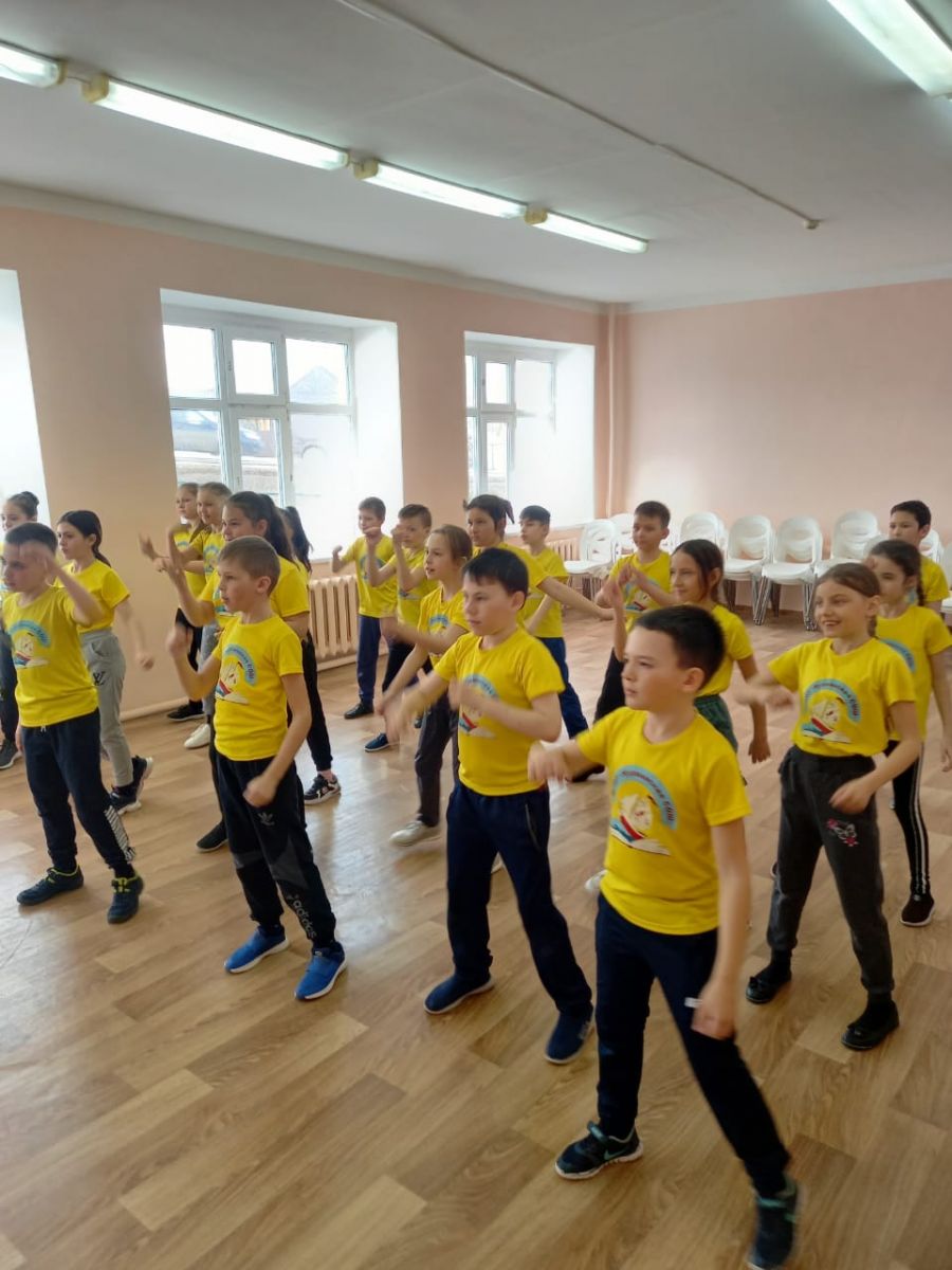 Активисты старшеклассники в целях пропаганды здорового образа жизни и укрепления здоровья с учащимися начальных классов провели утренний флешмоб. Движение это жизнь, давно известная фраза. Двигательная активность повышает, жизненный тонус и продолжительность жизни. Улучшает физическую выносливость организма и предотвращает от различных заболеваний костно-мышечной системы и позвоночника.