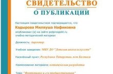 Директор ДШИ Кадырова М.Н., преподаватель фортепианного отделения опубликовала методическую разработку "Фортепиано и его предшественники" на Всероссийском образовательном проекте "ПЕДПРОСПЕКТ.РУ" (сетевое издание для педагогов всех ступеней образовательной системы РФ).