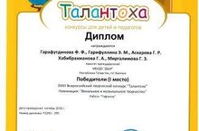 Младший хор "Домисолька" (руководитель Гарафутдинова Ф.Ф.) стал победителем 1 степени Всероссийского творческого конкурса "Талантоха"
