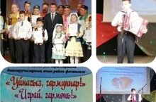Учащиеся отделения народных инструментов по классу гармони Закиров Р., Марданов Р. и Фасхутдинов Р. (преподаватель Мустафин Ф.М.) приняли участие в районном конкурсе гармонистов "Уйнагыз гармуннар!"