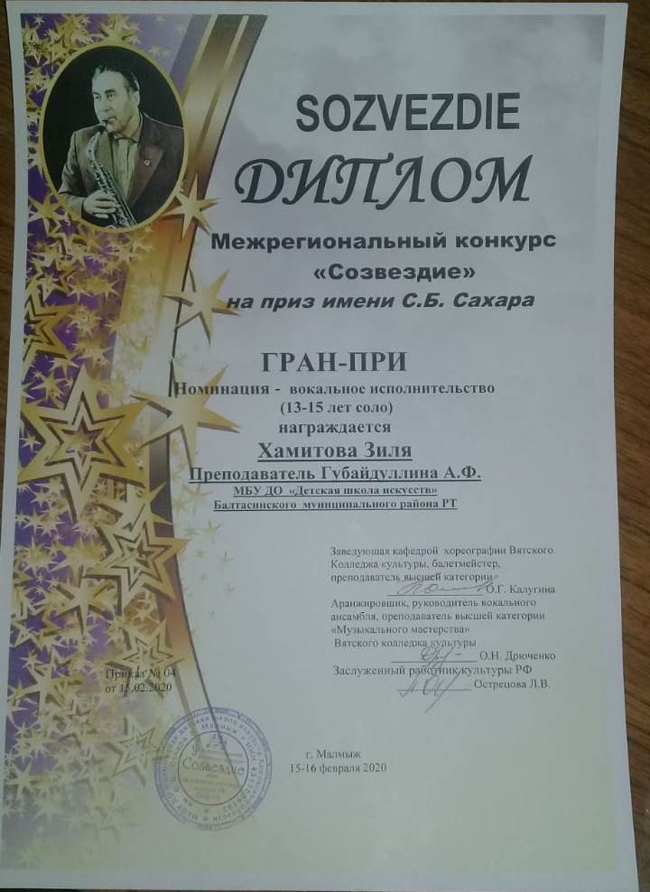 XIV открытый межрегиональный фестиваль-конкурс «СОЗВЕЗДИЕ» имени Заслуженного работника культуры РФ Сахар С.Б., посвященному 75-летию со Дня победы в ВОВ