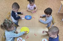 Дети группы раннего возраста на занятии "художественно- эстетической направленности" украсили ёлочную игрушку.