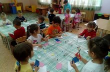 "Дәү әнигә яулык бизәү" темасына кисеп-ябыштыру шөгыле.