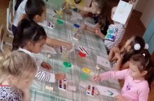 Зурлар төркеме балалары традицион һәм традицион булмаган ысуллар (мамык таякчыклары, пумала) кулланып көнбагыш чәчәге ясадылар.