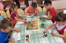 Мәктәпкә зерлек төркеме "Гөмбә салам кәрҗинемә" дигән темага рәсем ясый.