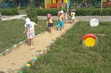Лето- это самый прекрасный период для общения ребенка с природой, для проведения игр, закаливающих и оздоровительных мероприятий на свежем воздухе. А какая же прогулка без закаливающих процедур и песка? Песочек, нагретый на солнышке, очень полезный.
