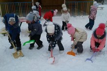Уртанчылар төркем белән Хезмәткә өйрәнәбез, мәйданчыгыбызда кар көрибез