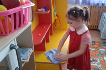 Кечкенәләр төркемендә хезмәт - хуҗалык көнкүреш күнекмәләрен ныгытабыз, эшкә өйрәнәбез.