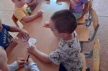 Сенсорика көне уңаеннан зурлар төркеме сенсорный өстәл янында кызыклы уеннар уйнады.