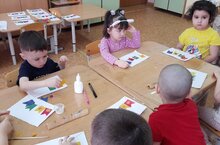 Икенче кече яшьтәгеләр төркеме балалары буяулар белән рәсем ясауның иң гади күнекмәләрен формалаштырдылар.