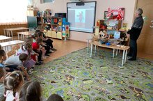 Вместе с воспитанниками детского сада была проведена игра-викторина "Будьте с огнем осторожны всегда". Дети вместе с героем мультфильма "Фиксики" Ноликом побывали в пожарном депо, увидели как работает пожарная служба. Так же усвоили важные правила пожарной безопасности и как нужно правильно действовать при пожаре.