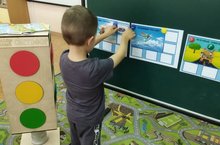 С воспитанниками старшей группы закрепляем знания о правилах безопасности на дорогах при помощи дидактических игр. Воспитатель: Закирова Г.Н.