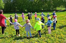 С детьми средней группы мы весело провели время на природе, играли в подвижные игры, наблюдали за красотой весенней природы.