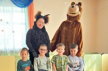 "Әкият геройлары" көне уңаеннан компенсацияләү төркеменә шүрәле белән аю кунакка килде. Алар балалар белән төрле уеннар уйнадылар. Тәрбиячеләр: Хисамова А.Р., Аглиуллина Г.Г.