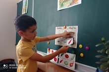 Логопед төркеменә йөрүче балалар "яшелчә hәм җиләк җимешләр" темасын ныгыттылар, уртак hәм аермалы билгеләрен таптылар.
