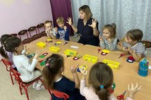 Дети старшей группы, применяя круглые и овальные формы, из пластилина слепили животных.