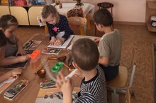 Кечкенәләр төркеме балалары рәсем шөгылендә.