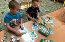 Собирая иллюстрации к сказкам, дети старшей группы осваивают содержание сказок известных личностей - Габдуллы Тукая и Абдуллы Алиша.