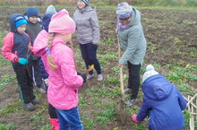 Мәктәп укучылары Бөек Ватан сугышында һәлак булган авылдашлар истәлегенә агач утырту өмәсендә катнаштылар.