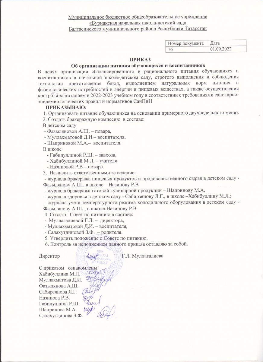 Приказ о создании бракеражной комиссии на 2024-2025 у.г.