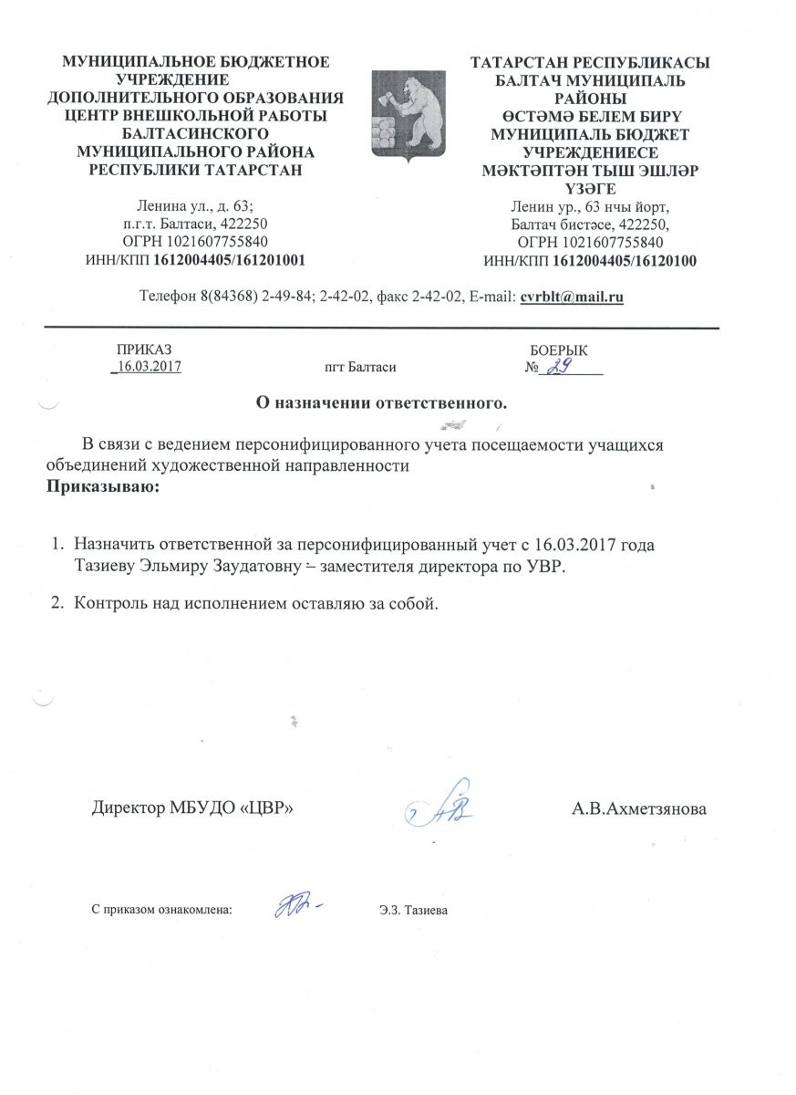 Короткое название: МБУДО "ЦВР" Балтасинского муниципального района Республики Татарстан
