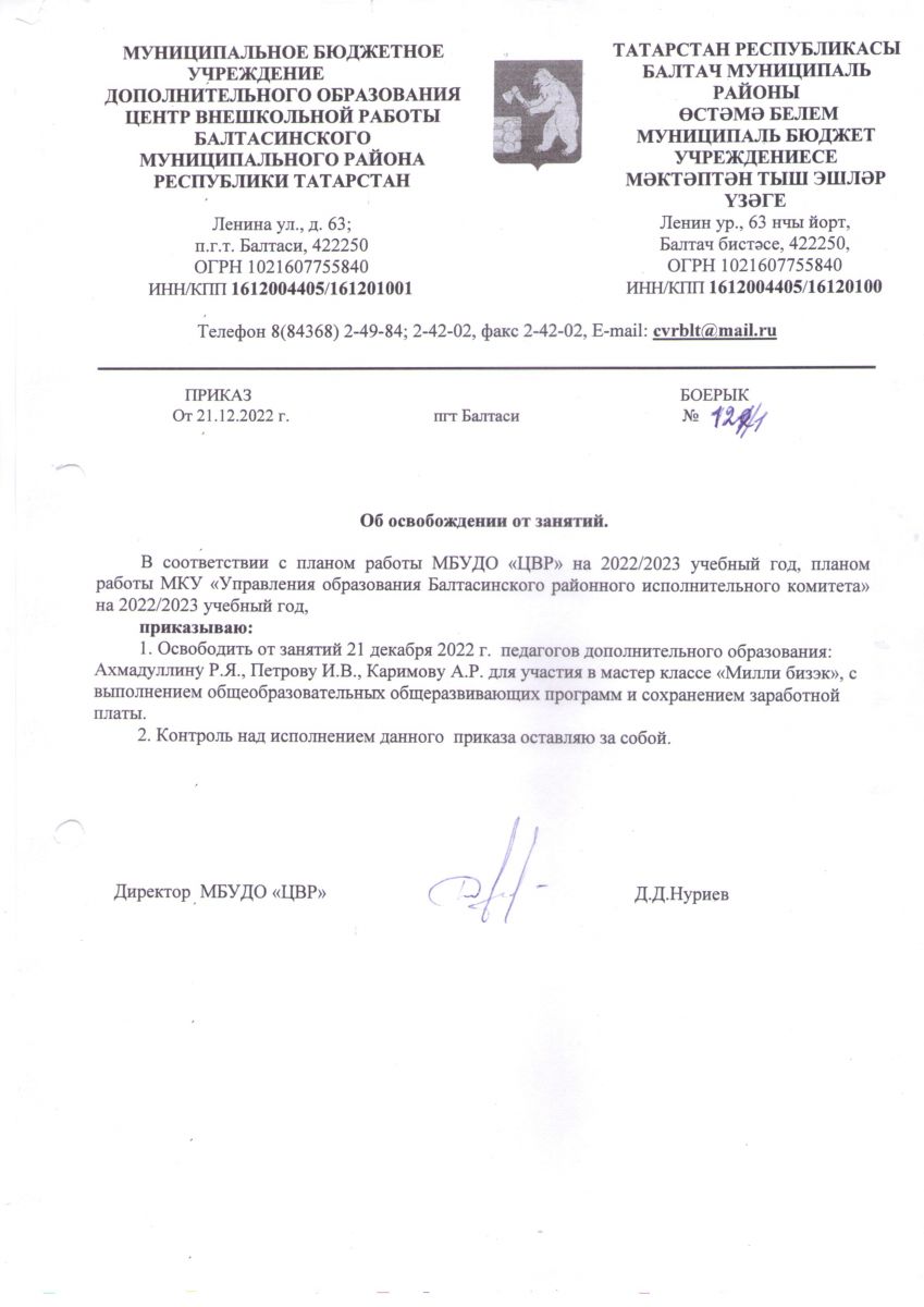 Адрес: 422250, РТ, Балтасинский район, п.г.т. Балтаси, ул. Ленина, д.63