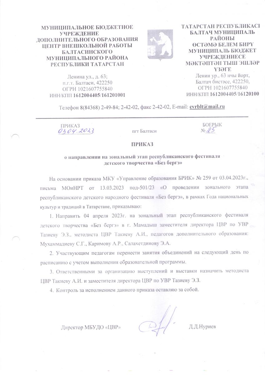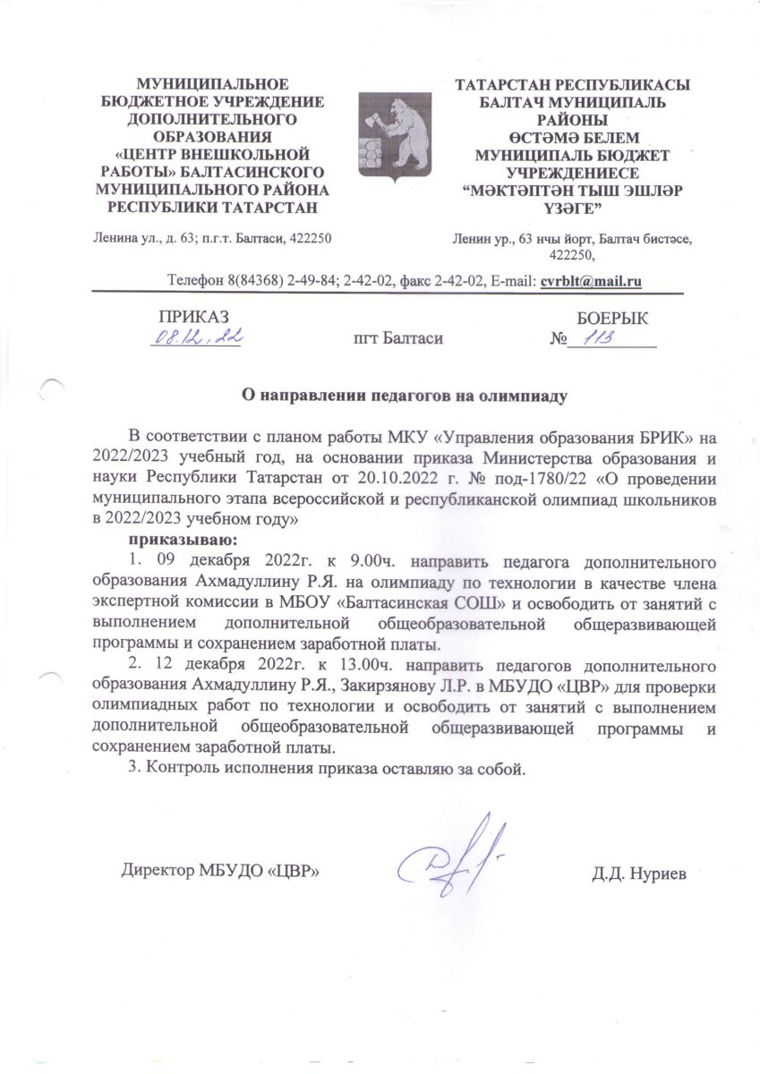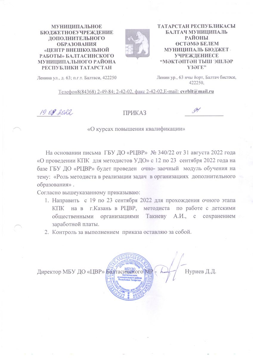 Короткое название: МБУДО "ЦВР" Балтасинского муниципального района Республики Татарстан
