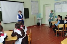 У нас учат: 12 учителей, 2 воспитателя /12 укытучы, 2 тәрбияче
