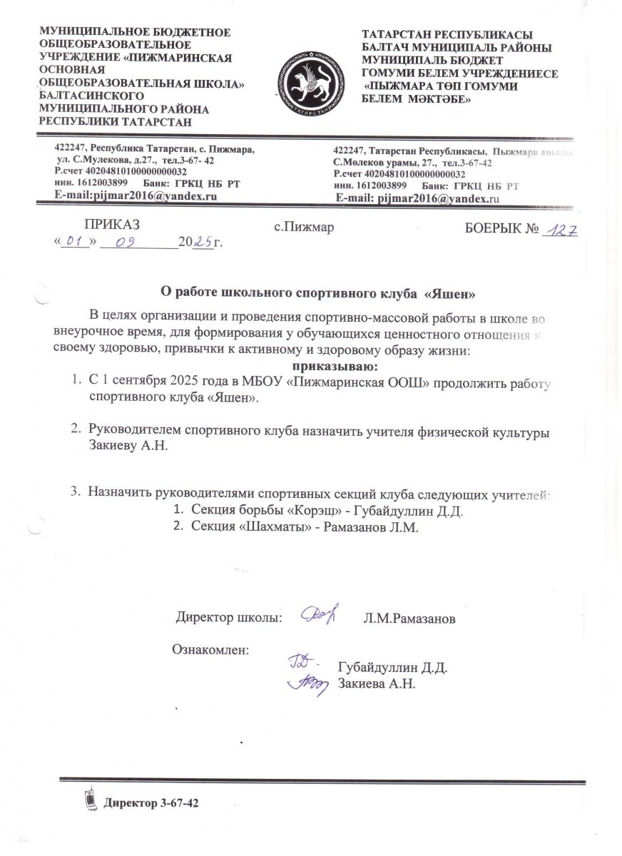 Адрес: 422247, РТ, Балтасинский район, с. Пижмара, ул. Мулекова, д. 27