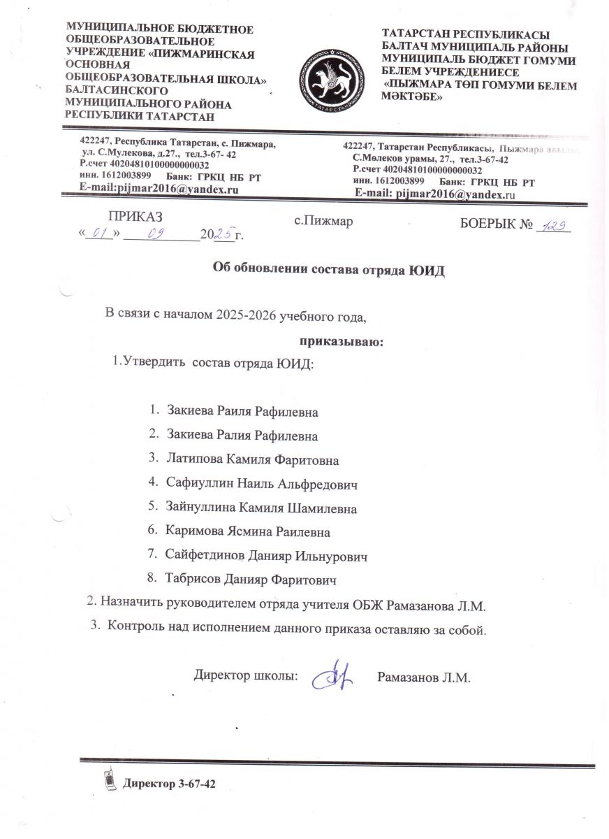 муниципальное бюджетное общеобразовательное учреждение «Пижмаринская основная общеобразовательная школа» Балтасинского муниципального района Республики Татарстан /Татарстан Республикасы Балтач муниципаль районы муниципаль бюджет гомуми белем учреждениесе « Пыжмара төп гомуми белем мәктәбе».