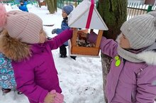 Далее сотрудники заказника совместно с воспитанниками детского сада установили 10 кормушек на территории детского сада. -