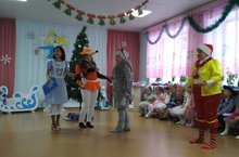 Иң кечкенәләрнең икенче торкемендә тәрбияләнүчеләр "Кыш бабайда кунакта" исемле бәйрәм иртәсендә катнаштылар.Бәйрәмгә куян,аю,убырлы карчыгы, шурәле, яна елның төп геройлары килеп балаларны сөендерделәр.