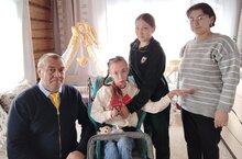 В рамках декады инвалидов посетили обучающихся на дому. /Инвалидлар декадасы кысаларында өйдә укучы балаларга бүләкләр тапшырылды.