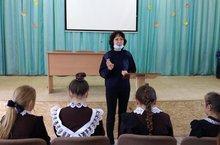 Встреча с муниципальным служащим полиции Низамиевой Л.Ф.Муниципаль полиция вәкиле Низамиева Ләйлә Фәргатовна укучылар белән тәртип мәсьәләләре турында аңлату эшләре алып барды.