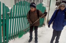 Инвалидлар ункөнлеге уңаеннан укучылар үзләренә беркетелгән әби-бабайларга барып йорт тирәләрен кардан чистарттылар.