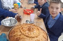 Праздник урожая в лицее после осенних полевых работ./Лицейда уңыш бэйрәме уздырылды. Укучылар тәмле бәлешләр белән сыйланды.