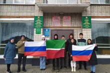 Приветствие символикой односельчан в честь дня Конституции Республики Татарстан./Татарстан Республикасы Конституциясе көне уңаеннан Дәүләт символлары белән җирлек вәкилләрен сәламләү.