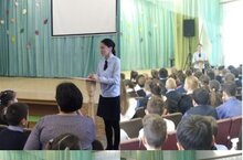 Встреча с муниципальным служащим полиции Балтасинского муниципального района Накиповой Р.Л. на тему: «Безопасные каникулы», «Прфилактика правонарушений»/ Муниципаль полиция вәкиле Накипова Р.Л. белән «Хокук бозуларны кисәтү» һәм «Имин каникуллар» темасына әңгәмәләр.