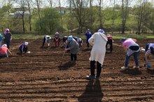 Мәктәп бакчасында эш гөрли башлады. Укытучылар җиләкләр күчерделәр, суган, кишер, чөгендер утырттылар.